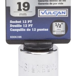 The Vulcan 1/2 drive sockets are manufactured from chrome vanadium steel and heat treated for added strength and wear protection; providing durability for a lifetime of hard use. Each socket features chamfered lead INS for quick and easy placement onto fasteners every time. Their polished chrome finish resist rust and corrosion and easily wipes clean of oil and dirt.Item Specifications