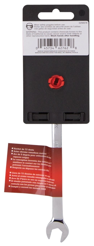 72 tooth ratcheting box-end with 5 deg of arc for use in tight space conditions. Drop-forged chrome vanadium steel. Mirror polish.