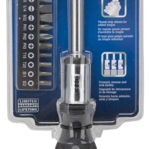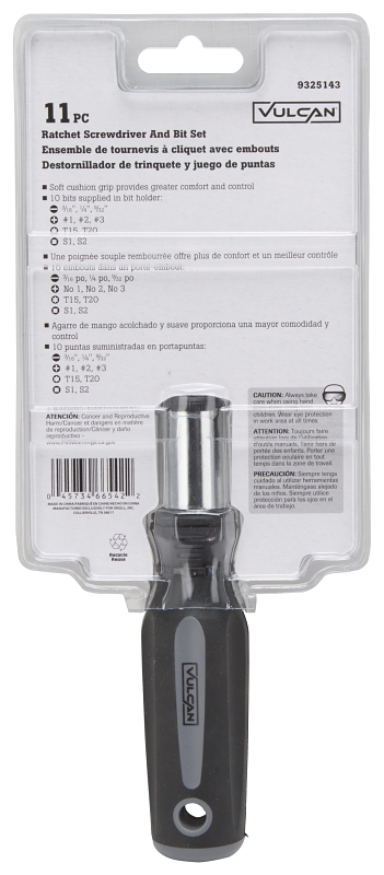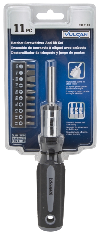 Vulcan Ratchet Screwdriver, Shank Length: 3-1/4 in, Shank Material: Steel, PP & TPR Handle, Handle Color: Black & Gray, Magnetic/Nonmagnetic: Magnetic, 7-7/8 in OALItem Specifications