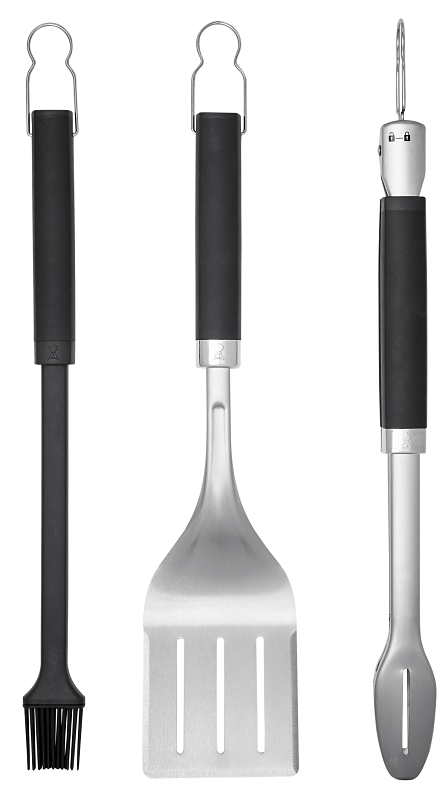 Flip burgers, turn vegetables or glaze your ribs with extra flavor. The three-sided beveled edge spatula, hands-free locking tongs and full-size silicone basting brush in the Precision three-piece grill set are your everyday grilling essentials in one kit. All tools feature a soft-touch handle for a comfortable and secure grip.Item Specifications