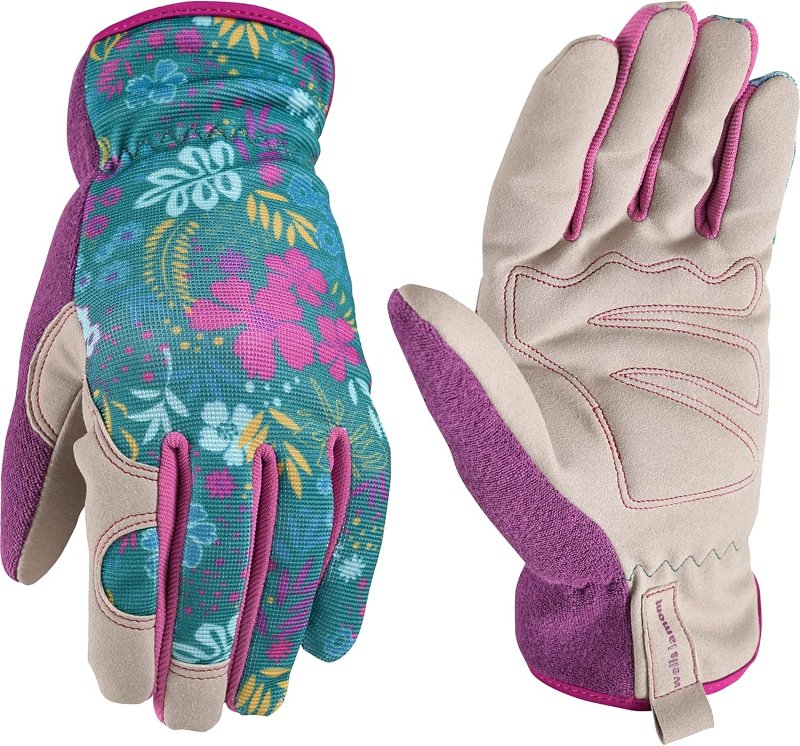 Home > Hand Tools > Safety and Organization > Gloves > Gloves Leather Palm > Wells Lamont 7753-M Gloves, High-Dexterity, Slip-On, Women’s, M, Elastic Cuff, Leather/Spandex/Terry cloth, Multi-Color
